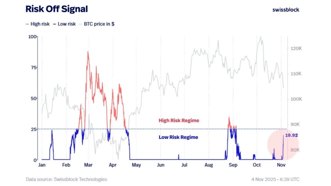مدیر ثروت خصوصی Swissblock اعلام کرد که سیگنال ریسک گریزی بیت کوین با تشدید فشار فروش در روزهای اخیر ناپایدار شده است. Swissblock تاکید کرد که این شاخص «هنوز در یک رژیم با ریسک پایین قرار دارد»، همانطور که در نمودار زیر نشان داده شده است. با این حال، این مدیر ثروت خصوصی افزود: «اگر وارد مناطق با ریسک بالا شود، می تواند نشانه ای از تغییر بالقوه روند باشد.» او اضافه کرد: «اگر شاخص وارد ناحیه با ریسک بالا شود و در آن باقی بماند، نشان می دهد که بیت کوین در حال انتقال به یک بازار نزولی است و این یک تغییر ساختاری است نه صرفا یک اصلاح قیمتی کوتاه مدت.»