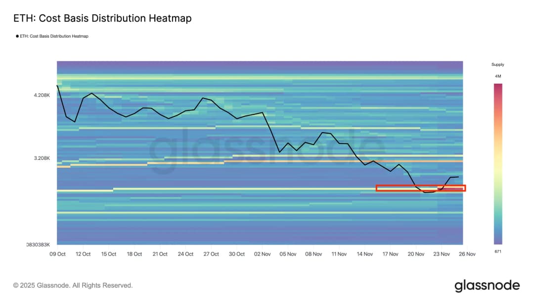 بر اساس داده های توزیع بهای تمام شده اتر، سرمایه گذاران حدود 4.95 میلیون ETH را با هزینه متوسط بین 2,800 و 2,830 دلار خریده اند و یک ناحیه حمایتی بالقوه ایجاد کرده اند. این تمرکز نشان می دهد بسیاری از سرمایه گذاران ممکن است قیمت را در حوالی این سطح دفاع کنند که می تواند آن را به سکوی پرتاب برای یک رشد تبدیل کند.